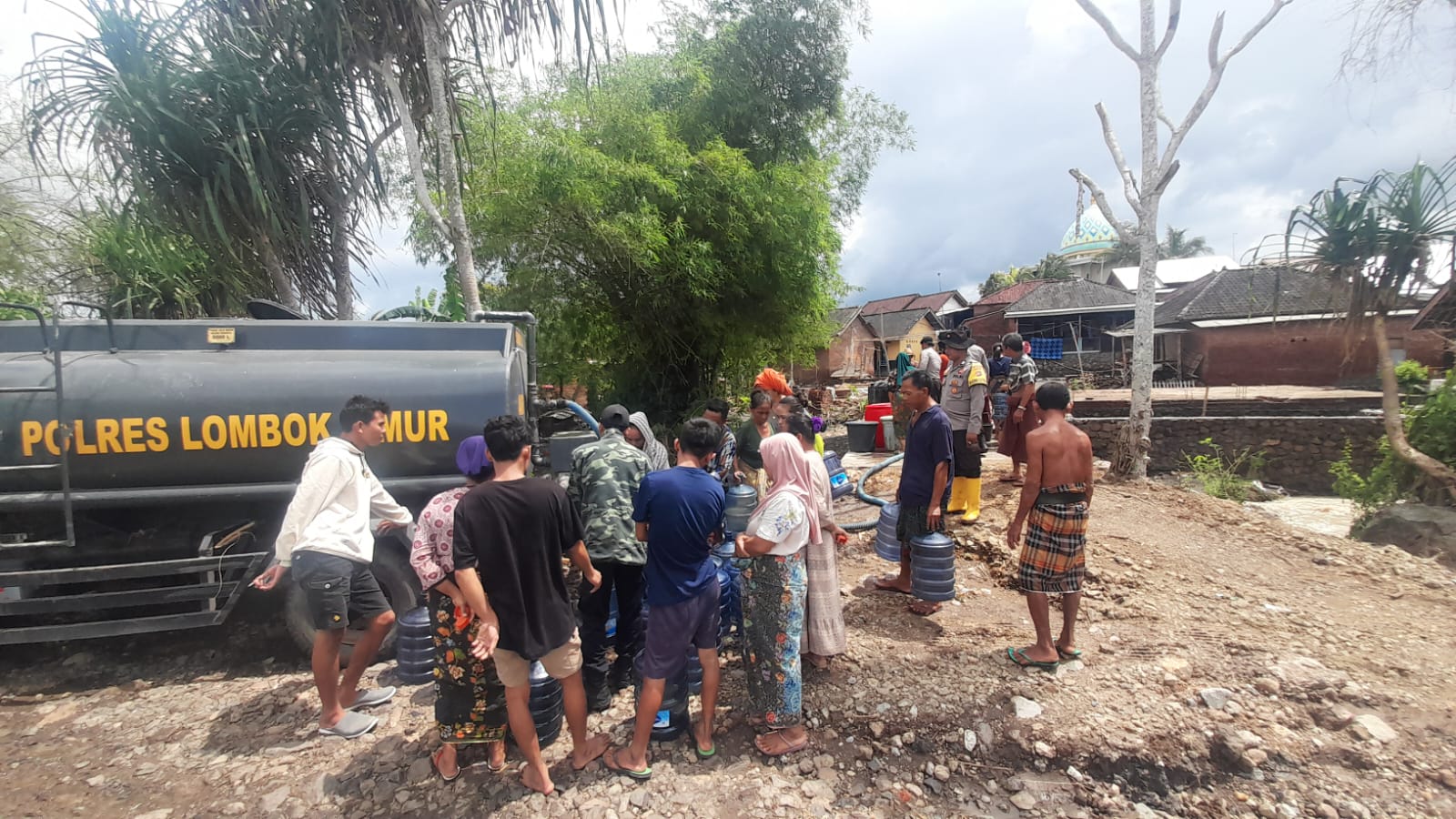 Selain pemberian Sembako Polres Lotim juga Salurkan bantuan berupa Air Bersih kepada warga yang terdampak luapan Air (banjir) pembagian air bersih kepada masyarakat yang terdamapk di Dusun Kelotok, Dusun Ulu dan Dusun Tanggar.