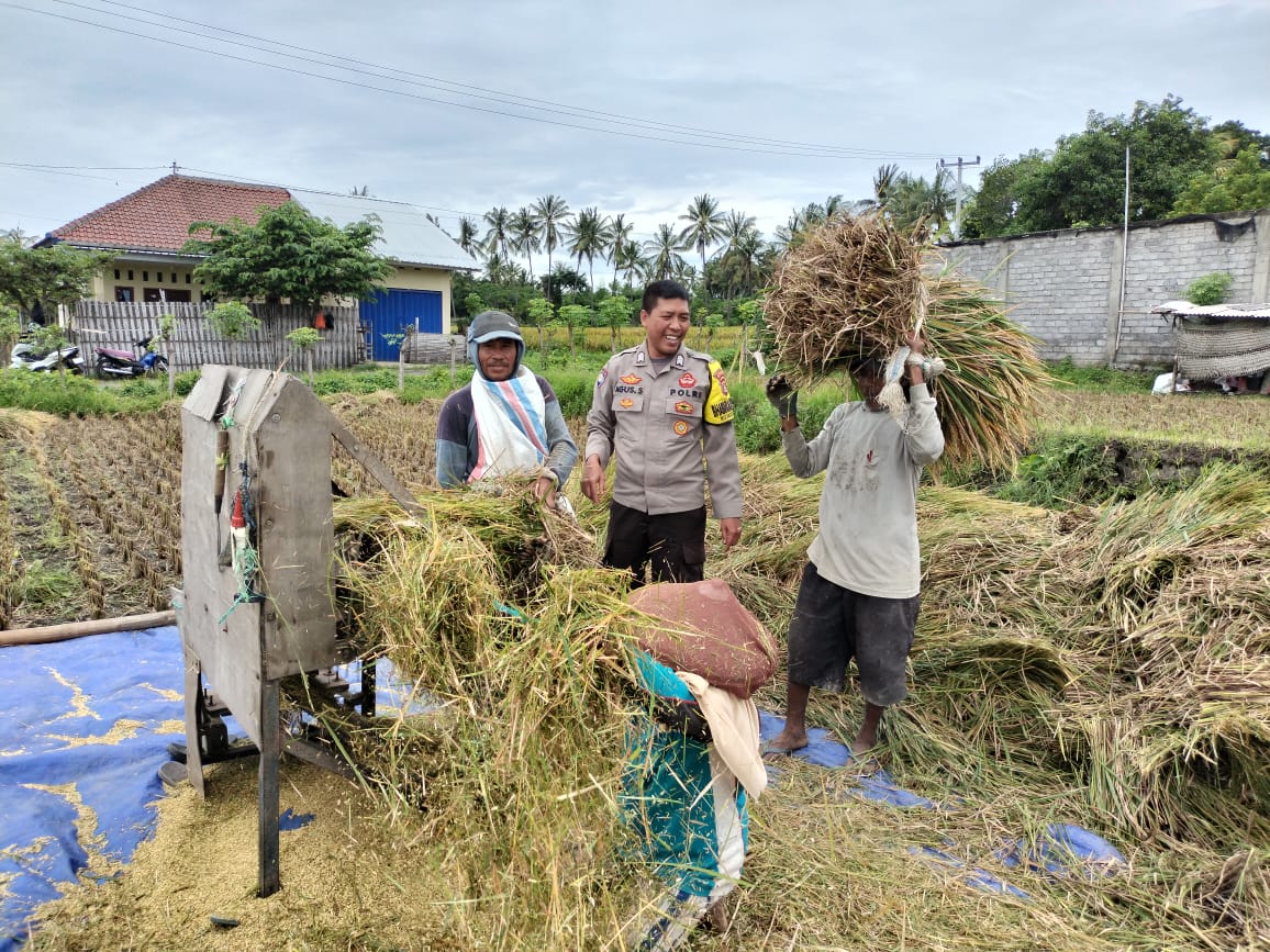Lombok Timur – Bripka Agus Salim, Bhabinkamtibmas Desa Bagik Papan, melaksanakan silaturahmi, membantu sekaligus memberikan himbauan kepada masyarakat yang sedang panen padi di lokasi persawahan Dusun Tontong Suit.Sabtu (21/12/24)., Pukul 10.30 Wita.