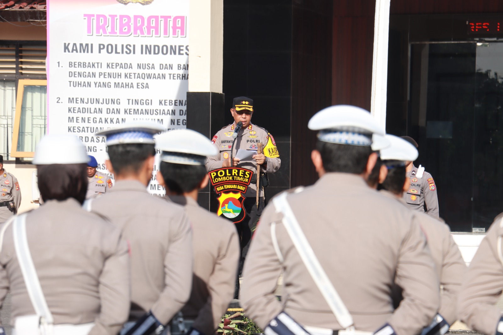 Dalam Amanatnya Kapolres Lotim menyampaikan; Polri adalah petugas yang memiliki tugas sebagai Pelindung Pengayom dan Pelayan Masyarakat, namun demikian itu ada yang tidak mampu menjaga atau mengemban tugas tersebut.