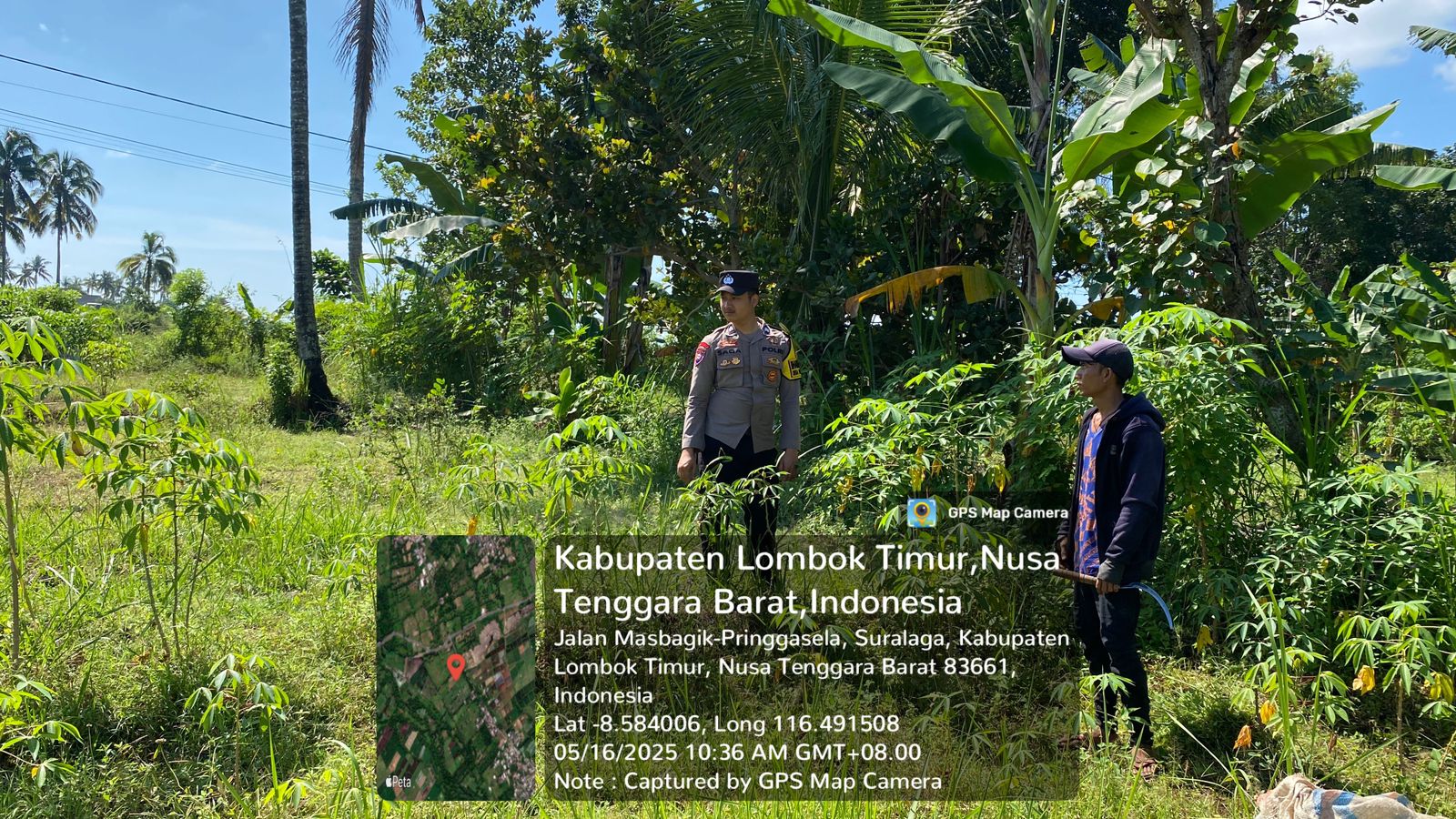 Lombok Timur – Dalam rangka mendukung Program Ketahanan Pangan Bergizi (P2B), Bhabinkamtibmas Desa Pringgasela Timur, Briptu Samsul Qamar, melaksanakan kegiatan pengecekan dan pemeliharaan lahan pertanian pada hari Jumat, 16 Mei 2025. Kegiatan berlangsung mulai pukul 10.00 Wita bertempat di Dusun Orong Bintang, Desa Pringgasela Timur, Kecamatan Pringgasela, Kabupaten Lombok Timur. 16 Mei 2025.