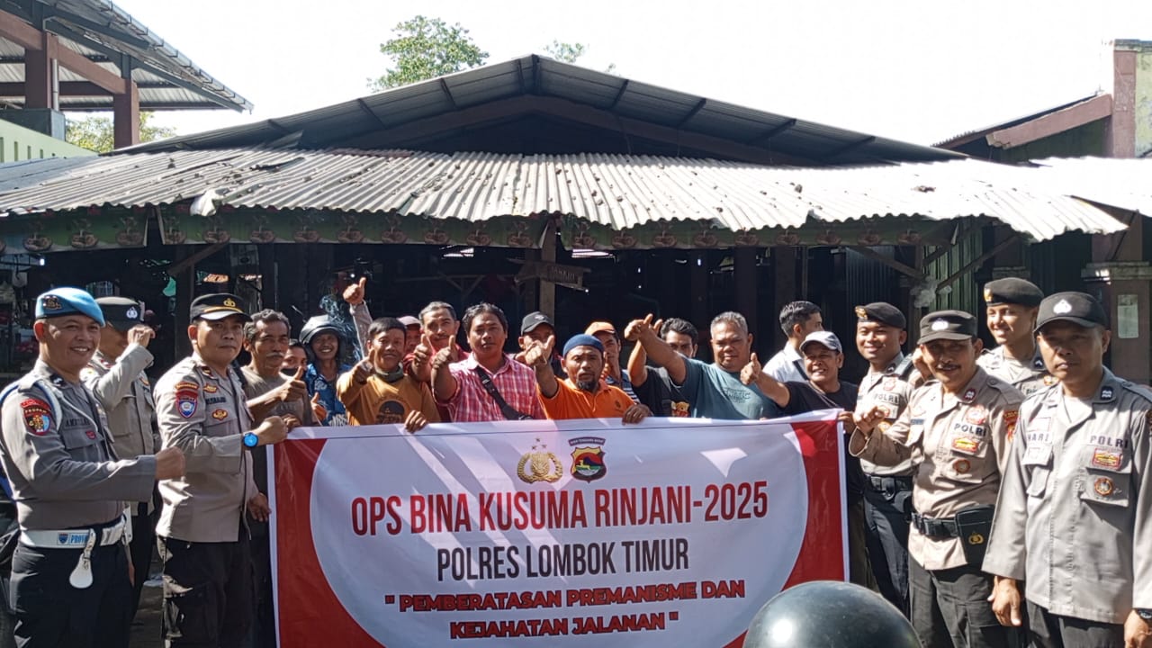Lombok Timur – Dalam rangka menciptakan situasi keamanan dan ketertiban masyarakat yang kondusif, Polres Lombok Timur melaksanakan Operasi Bina Kusuma Rinjani 2025 pada Senin, 26 Mei 2025. Operasi kali ini menyasar dua wilayah strategis, yaitu Kecamatan Seolong dan Kecamatan Labuhan Haji, dengan fokus di area pasar, pusat perbelanjaan, serta tempat-tempat keramaian lainnya yang rawan terjadi aksi premanisme.
