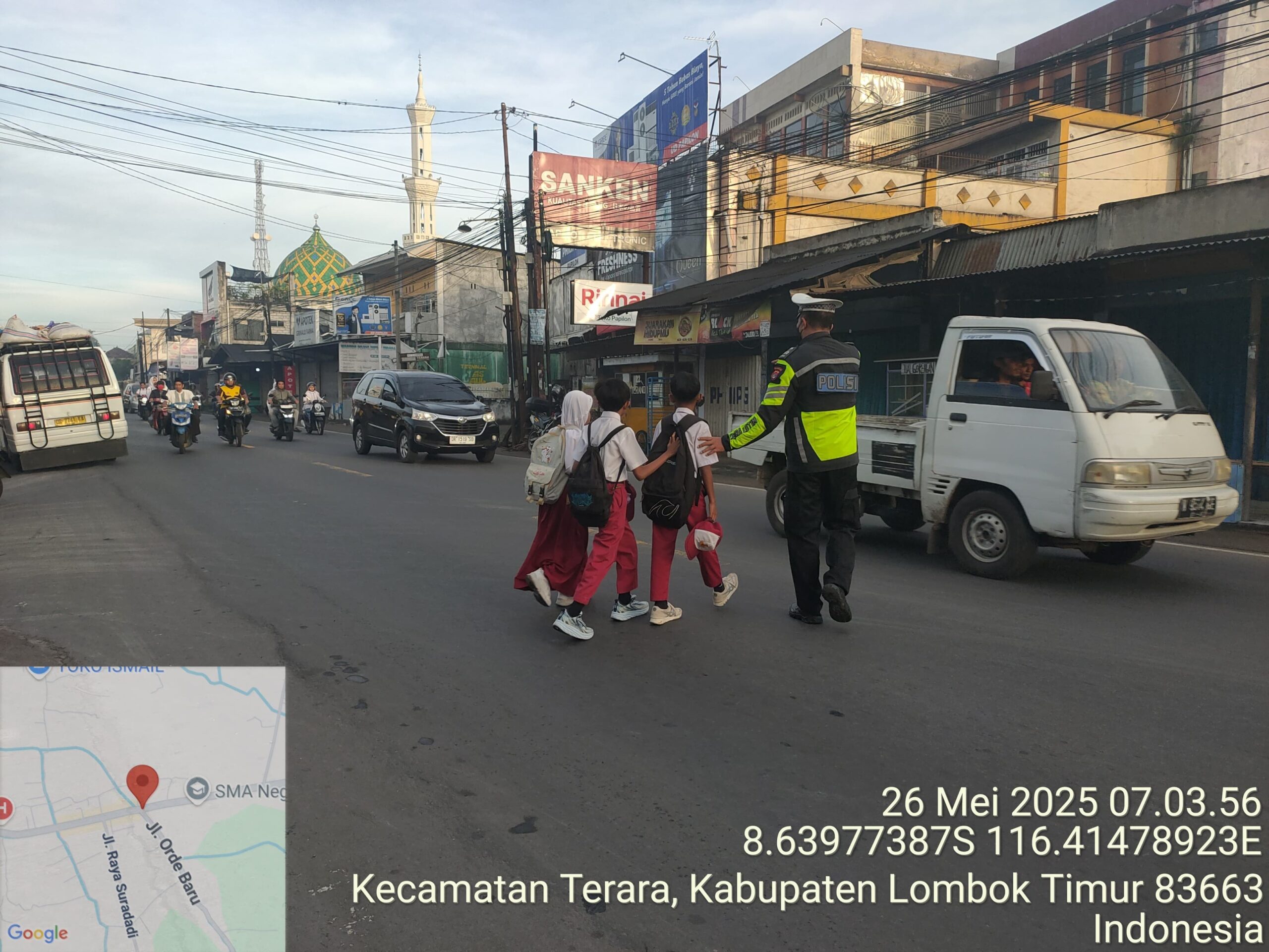 lotimnews.com – Dalam rangka menjaga ketertiban dan keselamatan masyarakat di jam rawan pagi, petugas kepolisian melaksanakan kegiatan pengamanan dan pengaturan lalu lintas pada Senin, (26/05/25) pukul 06.30 Wita. Kegiatan ini dilaksanakan di Simpang Tiga Papilon, tepatnya di depan SMPN 1 Terara, yang merupakan salah satu titik padat aktivitas masyarakat di pagi hari.