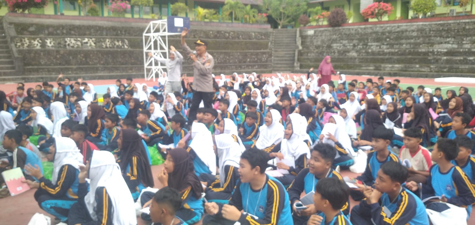 Lombok Timur – Kanit Binmas Polsek Masbagik IPTU L. Hidayat bersama AIPDA Sakban dan Bhabinkamtibmas Desa Lendang Nangka melaksanakan kegiatan sosialisasi di lingkungan SMPN 02 Masbagik. Kegiatan ini digelar sebagai bagian dari masa orientasi siswa (MOS) untuk menyasar para siswa siswi baru, dengan tujuan memberikan pembekalan dini mengenai kenakalan remaja, bahaya narkoba, dan pentingnya tertib berlalu lintas. Pada hari Kamis, 10 Juli 2025, Pukul 08.00 Wita.