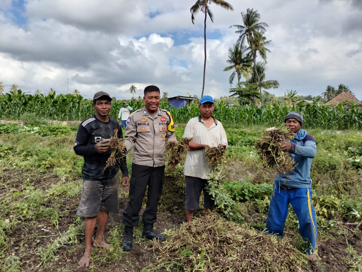 Lombok Timur – Bhabinkamtibmas Desa Bagik Papan Polsek Pringgabaya, Bripka Agus Salim, melaksanakan kegiatan silaturahmi sekaligus membantu masyarakat dalam kegiatan panen kacang tanah di Dusun Bampak, Desa Bagik Papan, Kecamatan Pringgabaya, Kabupaten Lombok Timur. Kegiatan ini merupakan bagian dari upaya mempererat hubungan antara Polri dan masyarakat serta wujud dukungan terhadap program ketahanan pangan pemerintah.