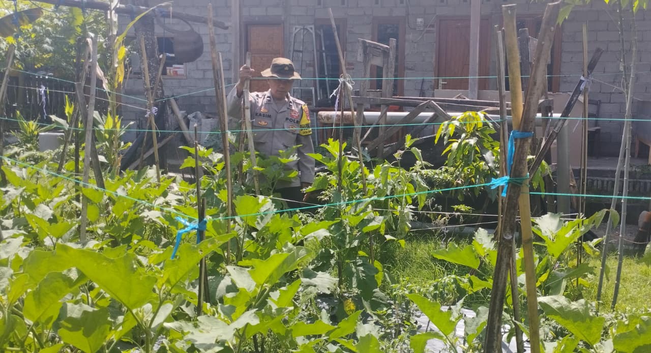 Bhabinkamtibmas Desa Masbagik Timur Cek Lahan Pekarangan Pangan Bergizi
