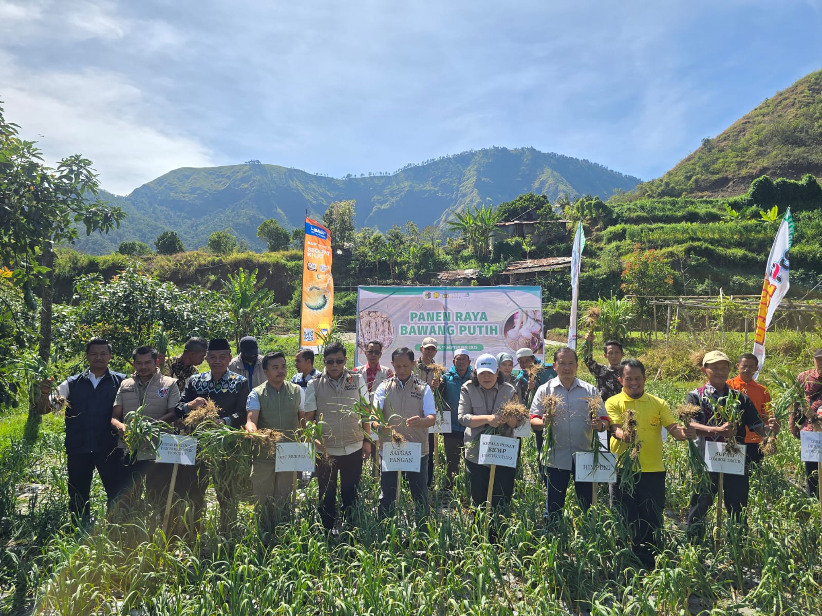 Lombok Timur – Program swasembada bawang putih nasional menunjukkan hasil yang menggembirakan. Bertempat di Desa Sembalun Bumbung, Kecamatan Sembalun, Kabupaten Lombok Timur, panen raya perdana bawang putih pada Kamis (11/9) berhasil melampaui target produktivitas yang ditetapkan pemerintah. Kegiatan ini dihadiri oleh Kasatgas Pangan Pusat, Brigjen Pol. Helfi Assegaf, S.H., S.I.K., M.H., perwakilan Himpunan Alumni Perguruan Tinggi Indonesia (HIMPUNI), serta jajaran Kementerian Pertanian.