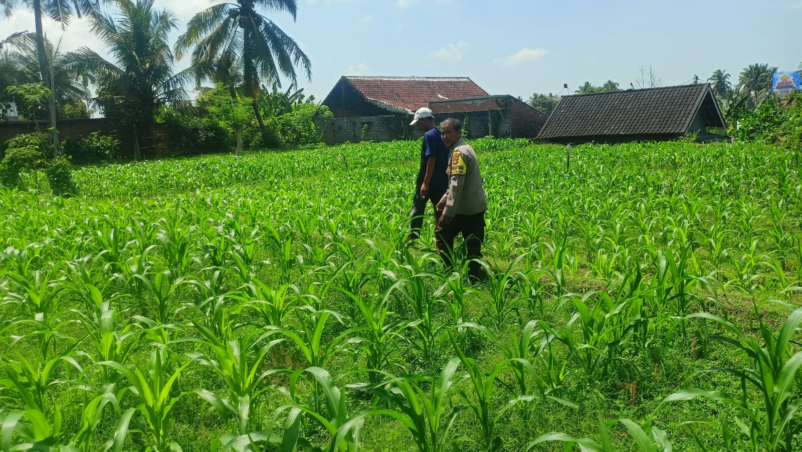 Dalam kegiatan tersebut, Aipda Maryadi turun langsung ke lahan pertanian untuk melihat perkembangan tanaman jagung yang dikelola oleh warga. Ia memberikan semangat kepada para petani agar terus menjaga produktivitas lahan mereka, karena sektor pertanian memiliki peran penting dalam meningkatkan perekonomian dan kesejahteraan masyarakat desa.