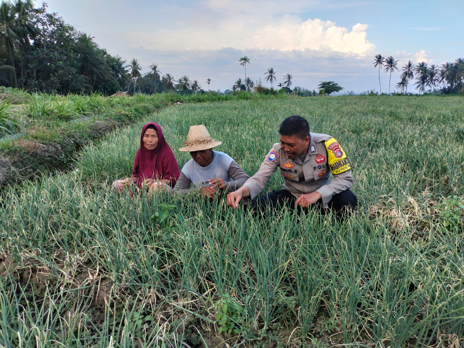Dalam kegiatan tersebut, Bhabinkamtibmas berinteraksi langsung dengan petani, mendengarkan keluhan dan tantangan yang mereka hadapi, termasuk terkait serangan hama dan perubahan cuaca yang memengaruhi produktivitas tanaman bawang merah.