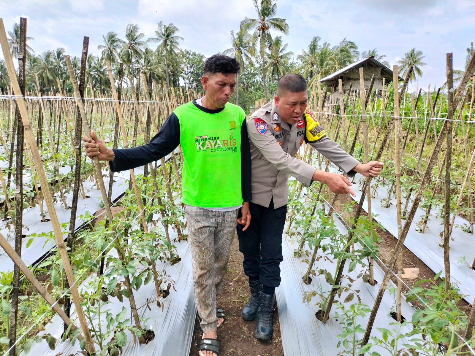 Lombok Timur – Dalam rangka mempererat hubungan kemitraan dengan masyarakat serta mendukung program ketahanan pangan, Bhabinkamtibmas Desa Bagik Papan, Bripka Agus Salim, melaksanakan kegiatan silaturahmi sekaligus pengecekan tanaman tomat milik warga.