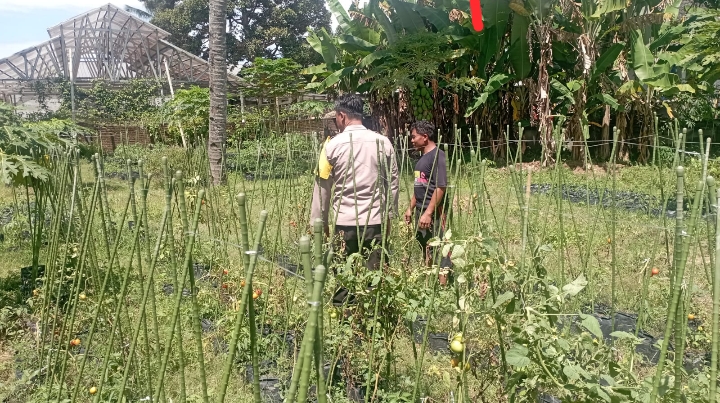 Dalam pelaksanaan tugas, Aipda Rodi H. mengecek kondisi tanaman tomat yang tengah dirawat oleh petani binaan. Ia berinteraksi langsung dengan para petani, mendiskusikan aspek pemeliharaan tanaman, kondisi media tanam, serta pola penyiraman yang tepat. Kegiatan ini dilakukan agar tanaman tumbuh subur dan hasilnya dapat memenuhi kebutuhan pangan lokal.