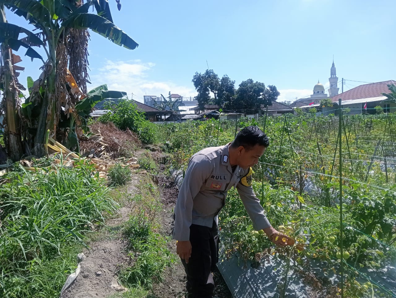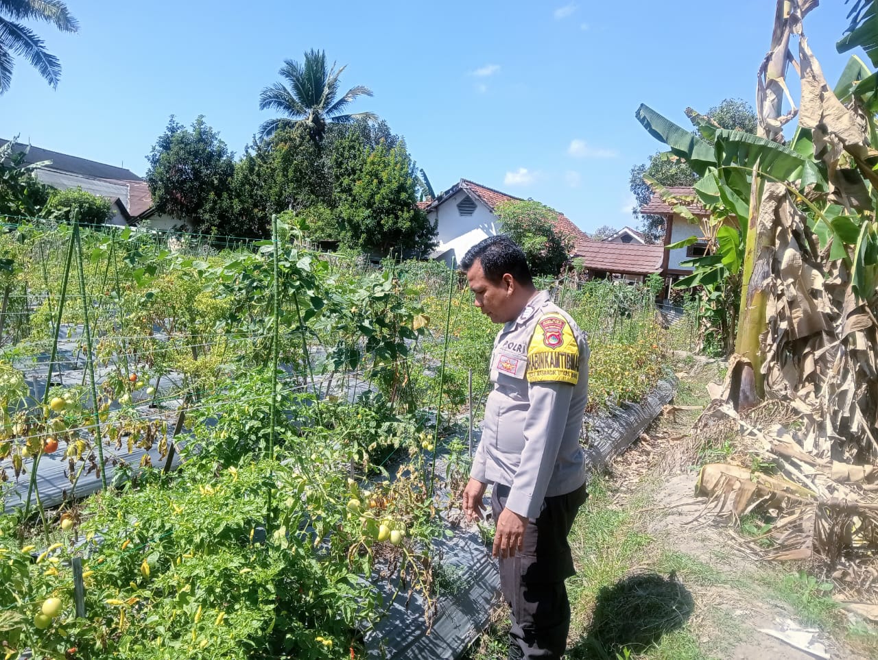 Dalam kegiatan ini, BRIPKA Amrullah meninjau langsung lahan yang ditanami berbagai jenis sayuran, seperti tomat, terong, dan cabai. Program ini sejalan dengan upaya pemerintah dalam mendukung swasembada pangan, sekaligus mendorong peningkatan gizi dan kesejahteraan masyarakat. Menurutnya, pemanfaatan pekarangan warga menjadi salah satu langkah nyata dalam menjaga ketahanan pangan di tingkat desa.