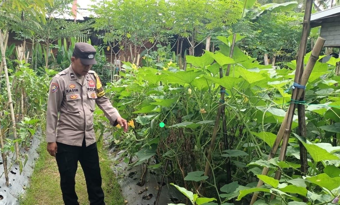 Dalam kegiatan yang berlangsung sejak pukul 10.30 Wita tersebut, Aipda Kasim meninjau langsung kondisi lahan pekarangan yang ditanami berbagai jenis tanaman pangan. Beberapa komoditas yang dikelola warga di antaranya terong, cabai, ubi, kunyit, jahe, dan labu. Tanaman-tanaman ini menjadi bagian dari upaya pemanfaatan lahan pekarangan untuk mendukung ketahanan pangan keluarga.