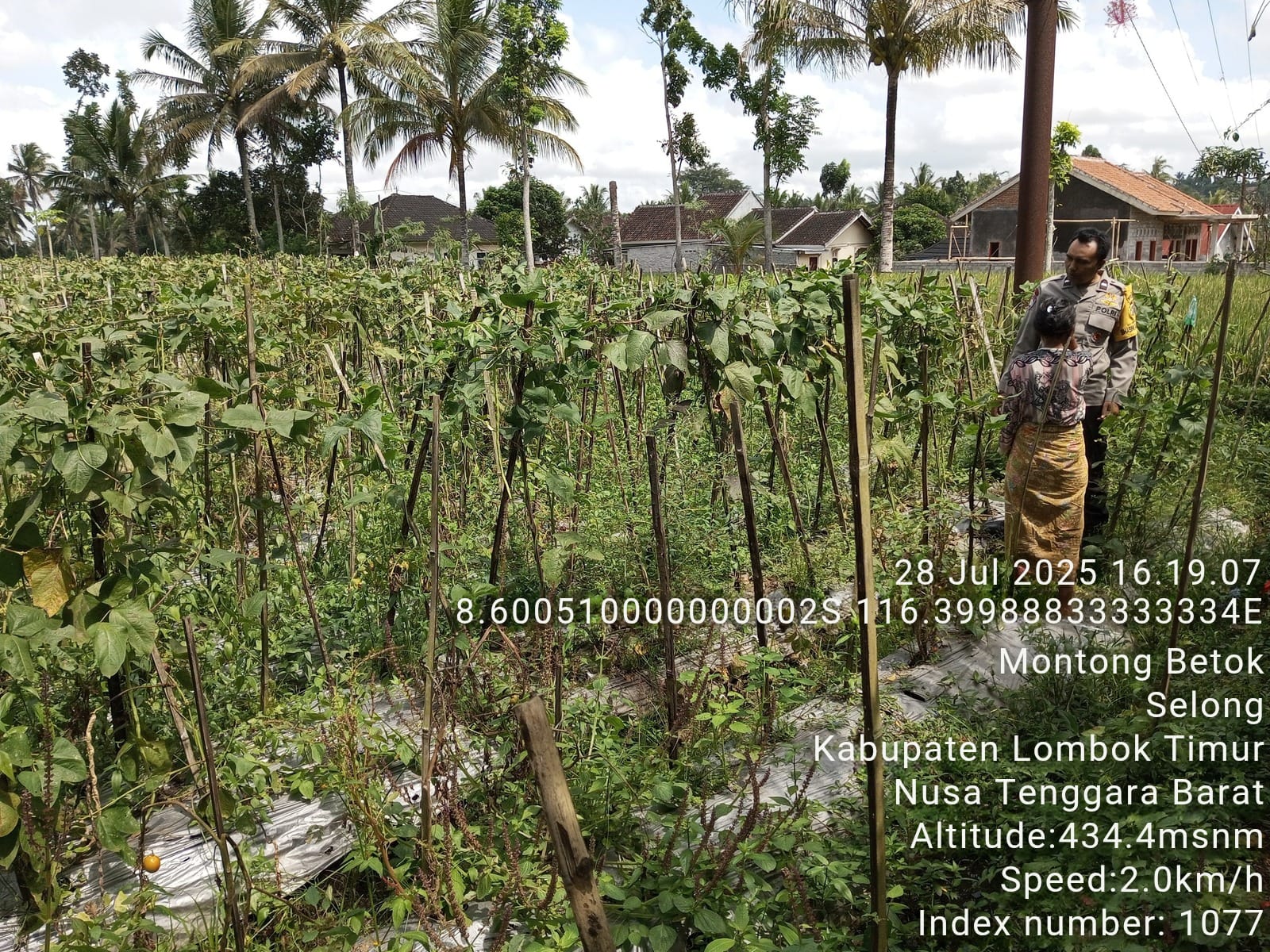 Lombok Timur– Bhabinkamtibmas Desa Montong Betok, Polsek Montong Gading, Aipda Lalu Khurdianto melaksanakan kegiatan pengecekan lahan dalam rangka mendukung Program Ketahanan Pangan Bergizi (P2B). Kegiatan ini dilaksanakan mulai pukul 16.00 Wita hingga selesai, bertempat di Dusun Gubuk Kantor, Desa Montong Betok, Kecamatan Montong Gading. Senin (28/07/2025)