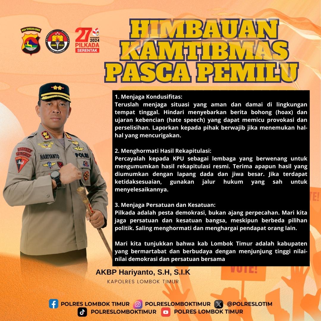 Kapolres Lombok Timur mengeluarkan beberapa imbauan agar masyarakat: