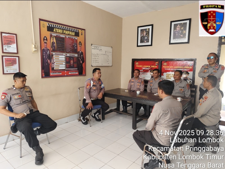 Lombok Timur – Aipda Made Supartono, Kanit Propam Polsek Kawasan Pelabuhan Laut LB Lombok Polres Lombok Timur, melaksanakan sosialisasi terkait pengawasan terhadap Pegawai Negeri Pengawai Pemerintah (PNPP), Selasa (04/11). Sosialisasi tersebut bertujuan untuk meningkatkan pemahaman dan kewaspadaan dalam rangka menghilangkan potensi pelanggaran disiplin di lingkungan Polsek Kawasan Pelabuhan Laut.