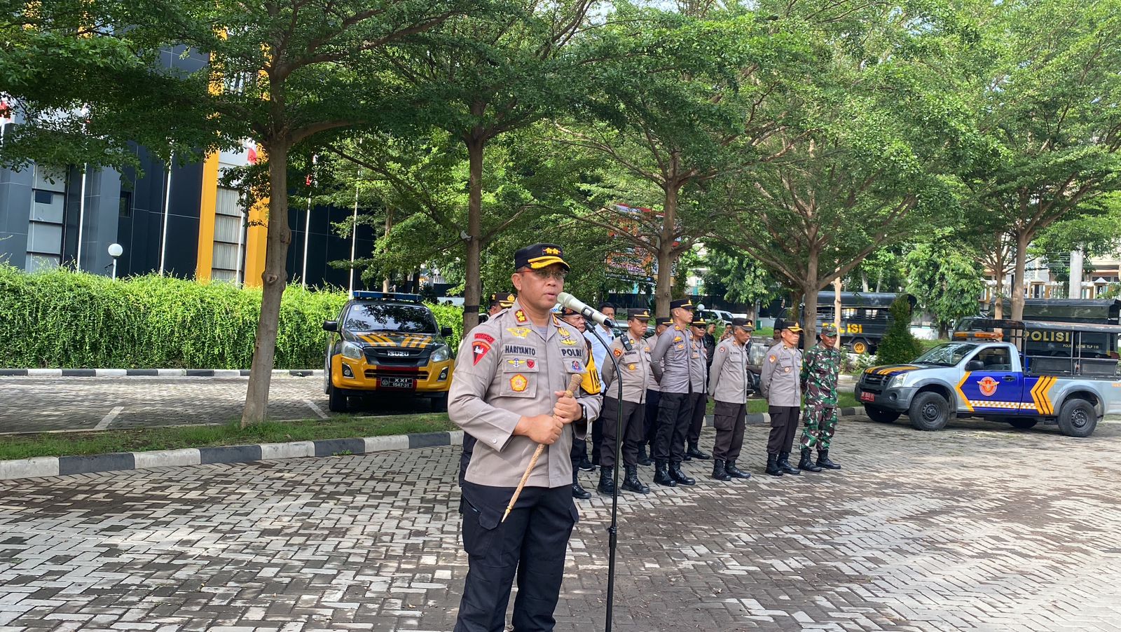 Lombok Timur – Kapolres Lombok Timur, AKBP Hariyanto, SH., S.I.K., memimpin apel persiapan pengamanan Rapat Pleno Terbuka Rekapitulasi Penghitungan Perolehan Suara yang dilaksanakan di halaman kantor Bupati Lombok Timur, Senin (2/12/24).