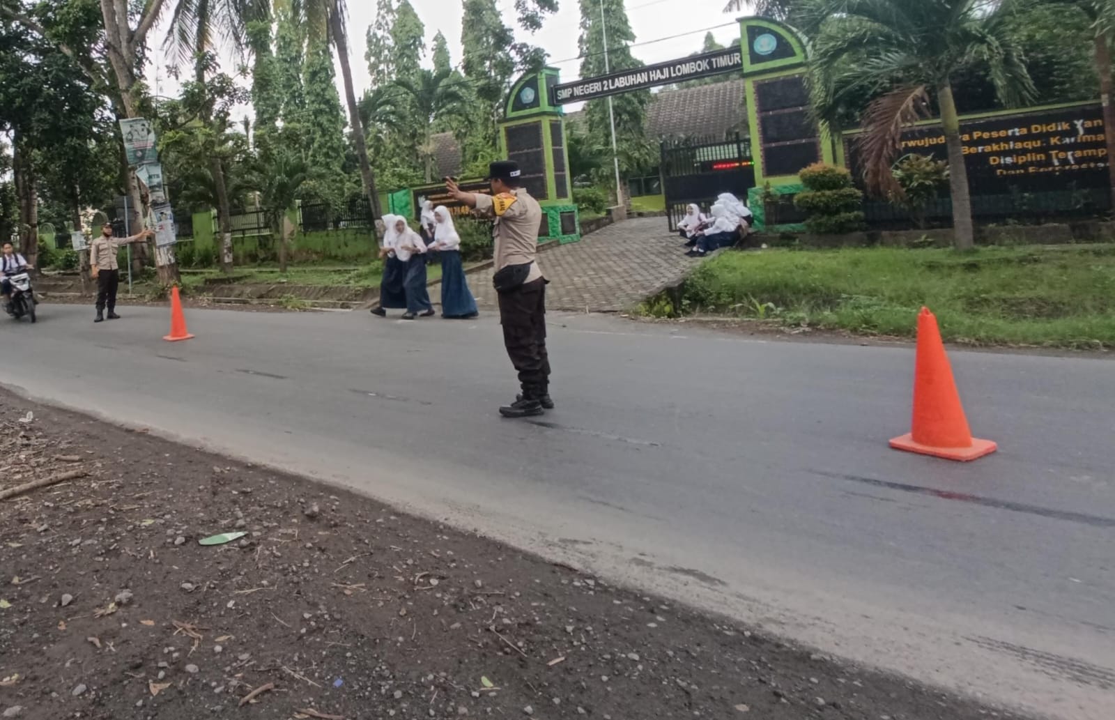 Kegiatan pengamanan pagi tersebut dilaksanakan di tiga lokasi strategis, yakni depan SDN 1 Labuhan Haji, SMPN 2 Labuhan Haji, dan SDN 1 Tanjung. Ketiga titik tersebut dipilih karena merupakan jalur utama masyarakat beraktivitas dan kerap padat pada jam-jam masuk sekolah.