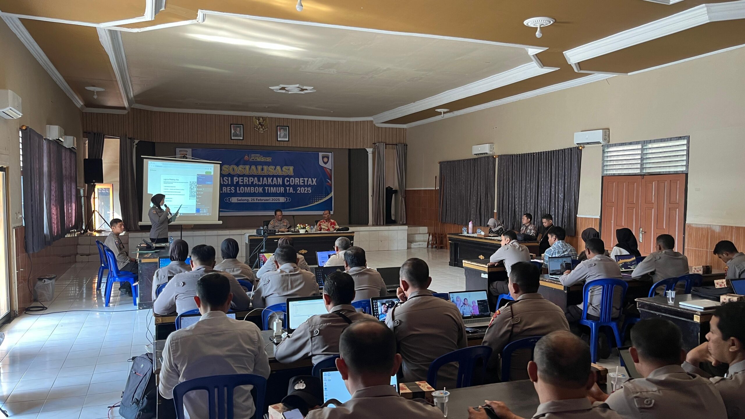 Lombok Timur – Kantor Pelayanan Pajak (KPP) Pratama Praya melaksanakan kegiatan sosialisasi Aplikasi Perpajakan Coretax di Polres Lombok Timur. Acara ini bertujuan untuk memberikan pemahaman yang lebih mendalam kepada para aparat penegak hukum mengenai sistem perpajakan terbaru yang digunakan oleh Direktorat Jenderal Pajak. Dengan adanya sosialisasi ini, diharapkan para peserta dapat mengoptimalkan penggunaan aplikasi Coretax dalam melaksanakan tugas dan tanggung jawabnya terkait perpajakan.