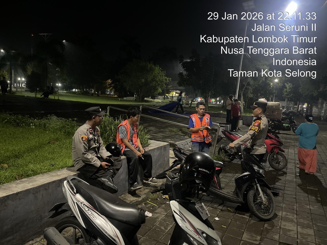 Lombok Timur – Personel PAMAPTA I Polres Lombok Timur yang dipimpin IPDA Ahsanul Hadi, S.H., bersama dua anggota BAMAPTA melaksanakan patroli rutin Blue Light pada Kamis (29/1/2026) malam hingga dini hari. Kegiatan ini bertujuan mengantisipasi tindak pidana 3C (curat, curas, dan curanmor), balap liar, penggunaan knalpot brong, serta gangguan kamtibmas lainnya.