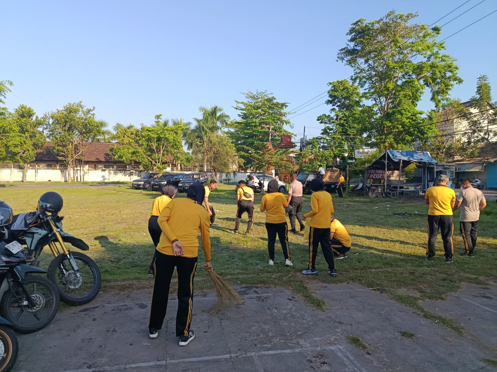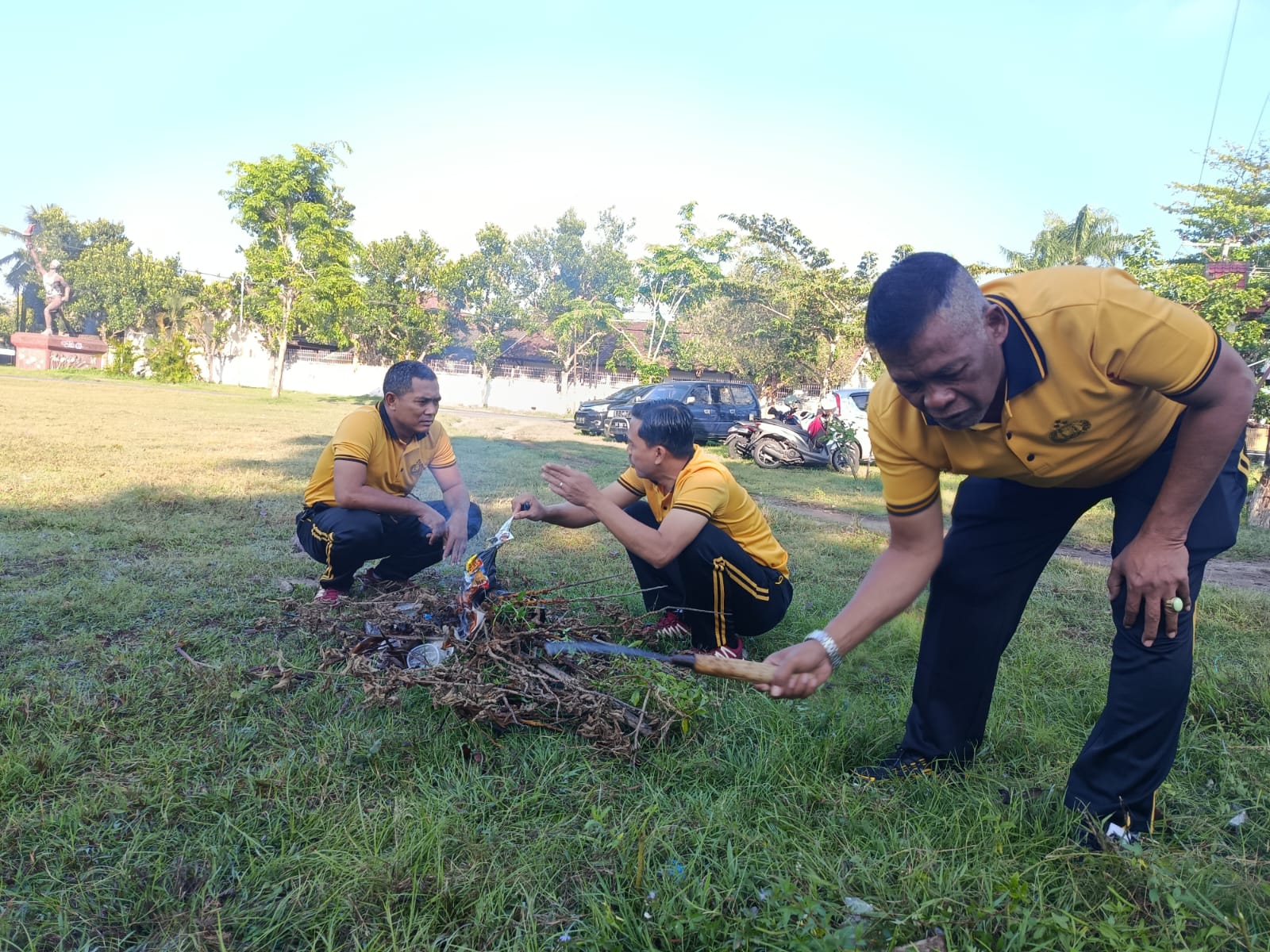 Sejak pagi, personel Polres Lotim tampak membawa peralatan kebersihan mulai dari sapu, cangkul, hingga kantong sampah. Mereka menyisir setiap sudut lapangan, memotong rumput liar, serta mengangkut sampah yang menumpuk agar kawasan tersebut terlihat lebih tertata dan nyaman digunakan masyarakat hal yang sama dilakukan disepanjang jalan dari depan Gor sampai perempatan Jalan Teuku Umar Kecamatan Selong Kabupaten Lombok Timur.