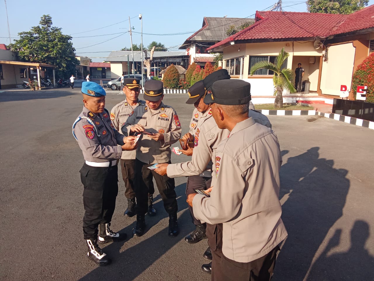 Kegiatan dilanjutkan dengan pemeriksaan administrasi kelengkapan diri personel, mulai dari KTP, SIM, KTA, hingga surat-surat penting lainnya. Tim Propam melakukan pengecekan secara menyeluruh guna memastikan setiap anggota membawa kelengkapan identitas resmi yang masih berlaku dan sesuai ketentuan.