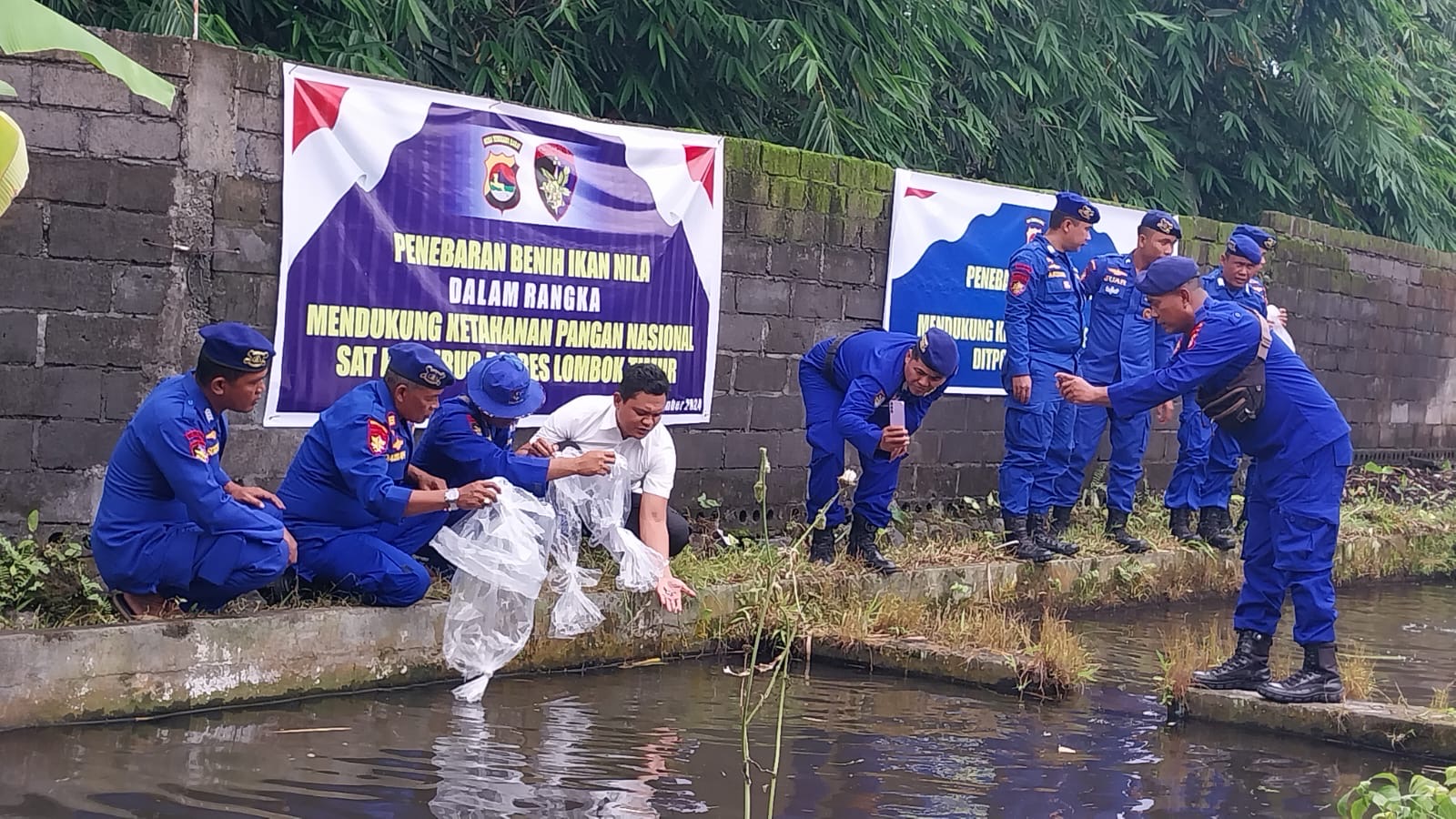 Sat Pol Airud Polres Lombok Timur, Polda NTB, melaksanakan program Asta Cita Presiden Republik Indonesia dalam rangka ketahanan pangan dengan kegiatan penebaran bibit ikan nila. Kegiatan ini berlangsung di Dusun Pungkang Daye, Desa Aikmel Barat, Kecamatan Aikmel, Kabupaten Lombok Timur, dimulai pukul 09.00 WITA. Program ini bertujuan untuk mendukung penguatan ketahanan pangan masyarakat melalui sektor perikanan. Kamis (12/12/2024)