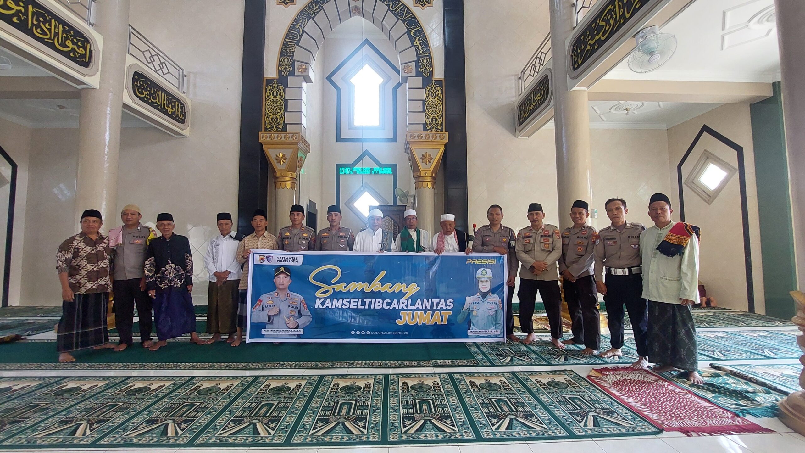 Dalam kegiatan tersebut, personel Satlantas Polres Lombok Timur turut melaksanakan Salat Jumat berjamaah bersama masyarakat setempat. Usai salat, jajaran Satlantas menyampaikan himbauan dan edukasi kepada jamaah terkait pentingnya menjaga keamanan, keselamatan, ketertiban, dan kelancaran lalu lintas (Kamseltibcar Lantas). Materi yang disampaikan meliputi larangan penggunaan knalpot brong, pentingnya menggunakan helm saat berkendara, serta aturan dalam penggunaan sepeda listrik yang hanya diperbolehkan di jalur tertentu dan bukan di jalan provinsi maupun protokol.